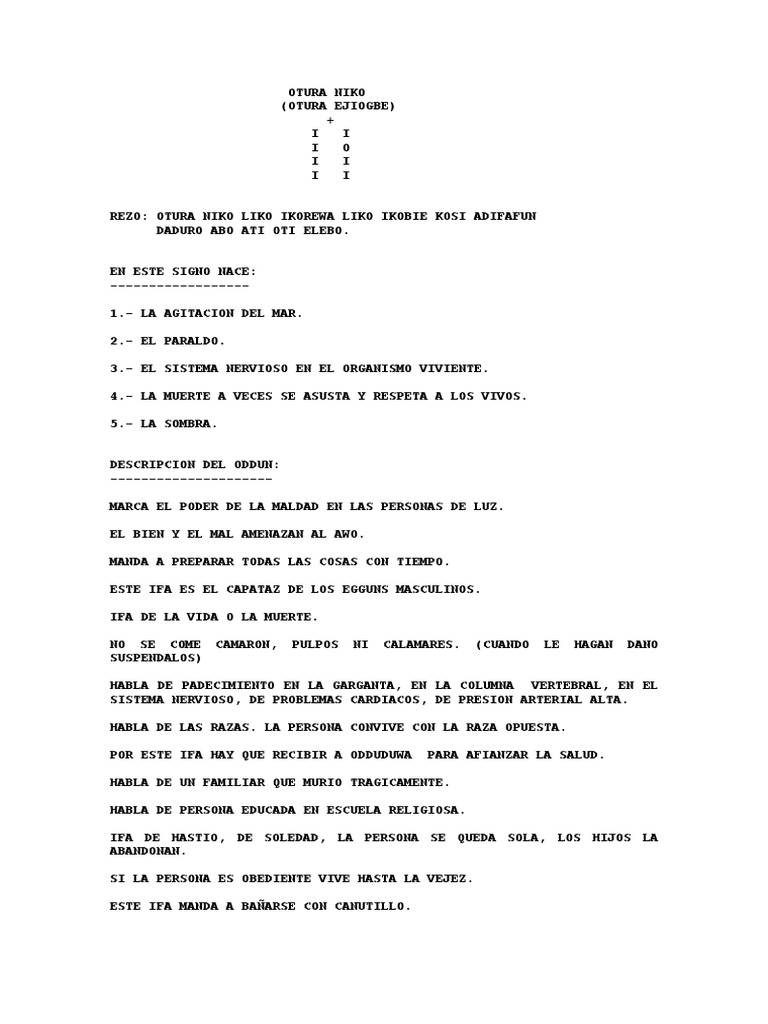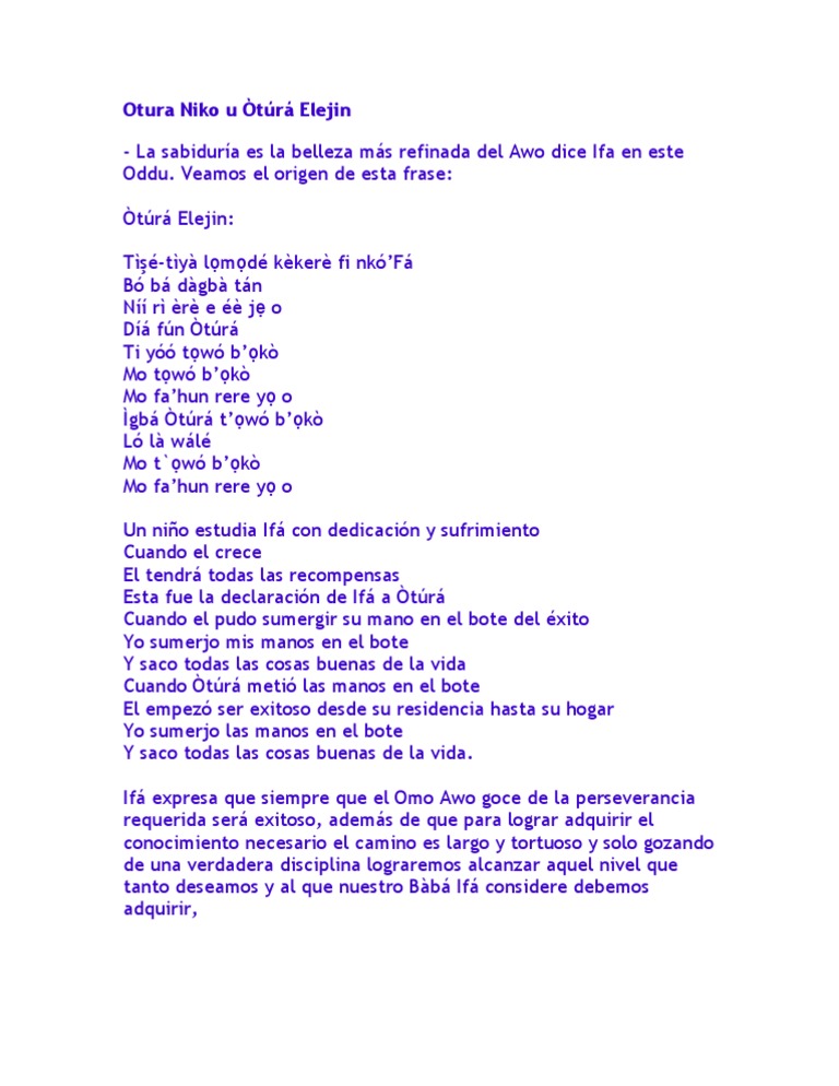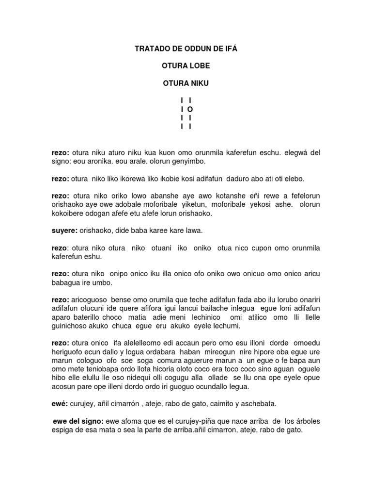 Doc Para Darle De Comer A Eggun Orun Geishir Lup Academia Edu from 0.academia-photos.com La laborespiritual de otura niko:nueve botellasobotellitasde otí,siete pañuelosde distintoscolores,unpañuelocon telasde nueve coloresdistintos cuandose reza otura niko,el súyere que se cantaes el siguiente:onilenileparaldoalado, onile nile paraldosomo.se tiralaosiadié contrael. Tambien quisiera saber porque tengo hijos menores de edad como tendria q hacer para agenciar sus citas. It urges us to choose wise words in order to avoid conflict and. El camino de awó afiku oro, el padre de otura niko el camino de cuando shangó estaba haciendo maldades el camino del hombre que pactó con ikú, con arun. Aricoguoso bense omo orumila que teche adifafun fada abo ilu lorubo onariri adifafun olucuni ide. Realizar una consulta sobre este producto. Otura n.'nın bütün fotoğraflarını, tavsiyelerini, listelerini ve arkadaşlarını gör. Òtúrá ekúndayo ( otura niko) aránisan iyawo òrúnmìlà.
